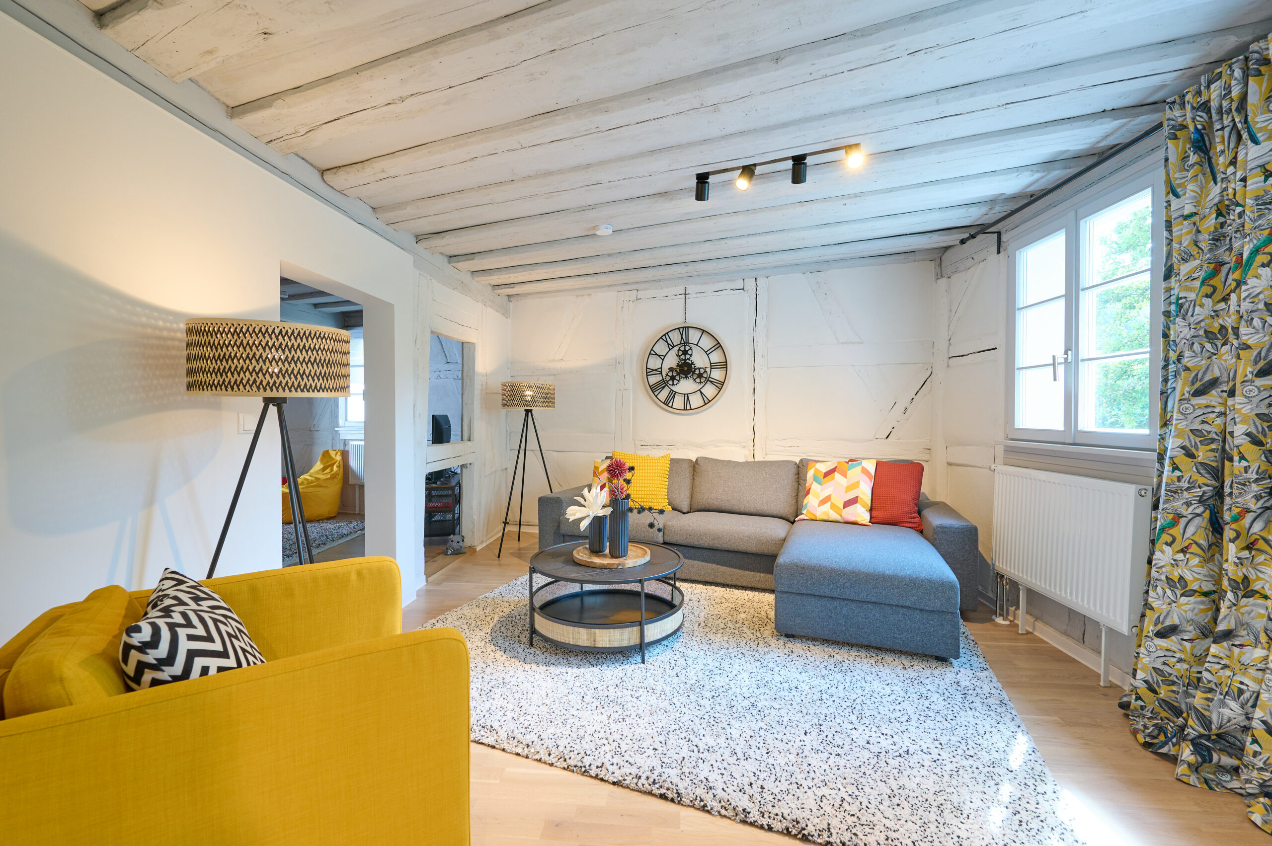 Mit einem Mix von bezahlbaren Möbeln von Lieferanten wie Ikea und Zuiver u.a. wurden die Räume möbliert. Farbakzente wurden gezielt gesetzt. Gardinen, Teppiche und ansprechende Deko machen die Räume zur Kurzzeit-Miete einladend und gemütlich.