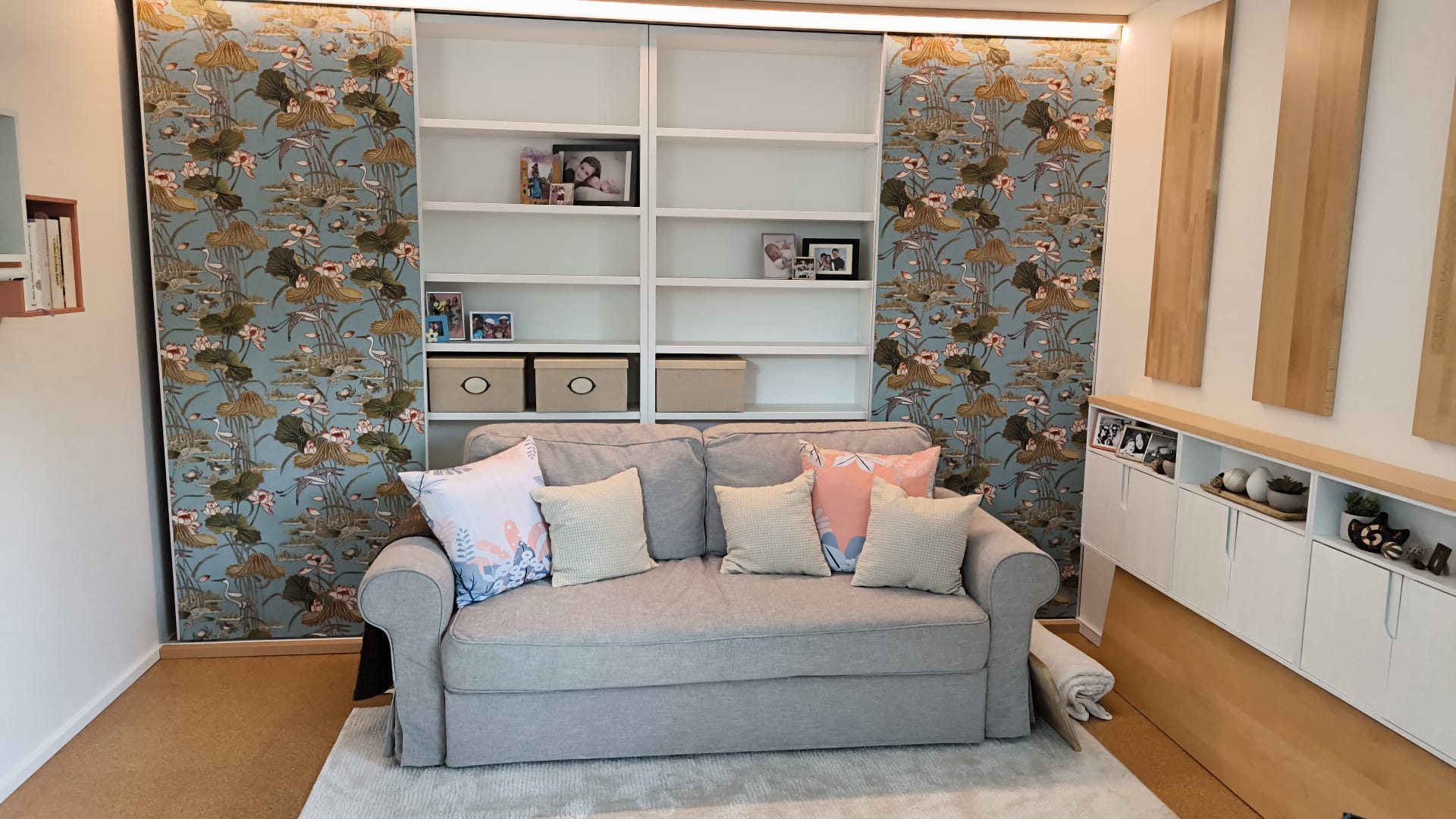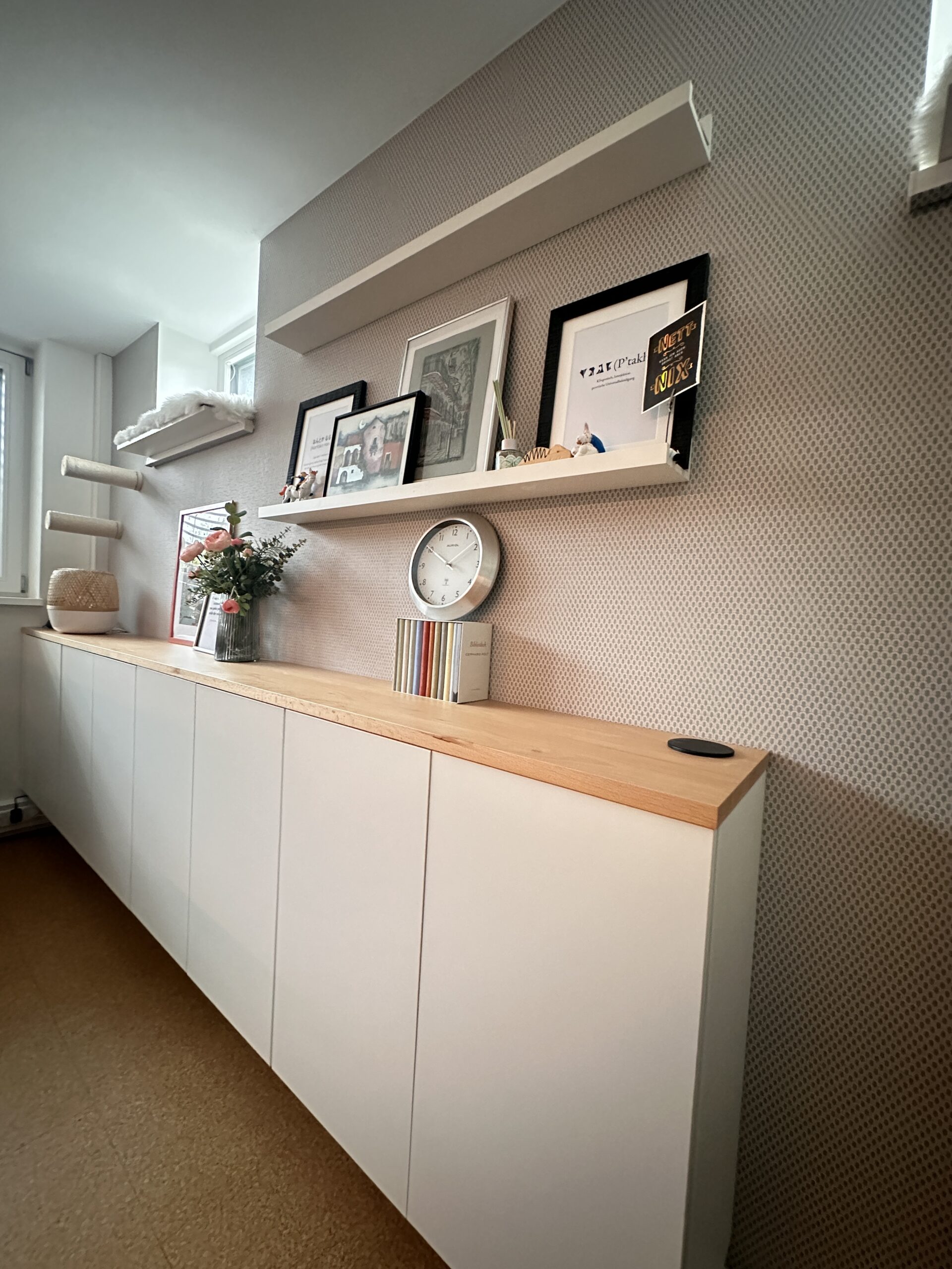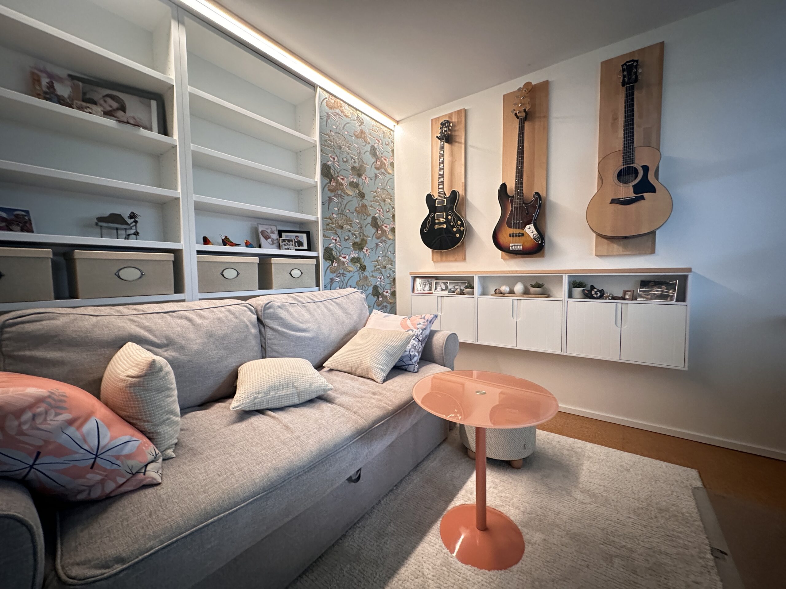 Frau Fuchs hat sich der komplexen Aufgabe angenommen, unser Multifunktionsdurcheinander zu strukturieren und in einen wohnlichen Raum mit Wohlfühlcharakter zu verwandeln! Ihre Lösungen sind kreativ, modern und gleichzeitig zweckmäßig und wie gewünscht gab es einen Budget freundlichen IKEA+Schreiner Mix, der top aussieht.