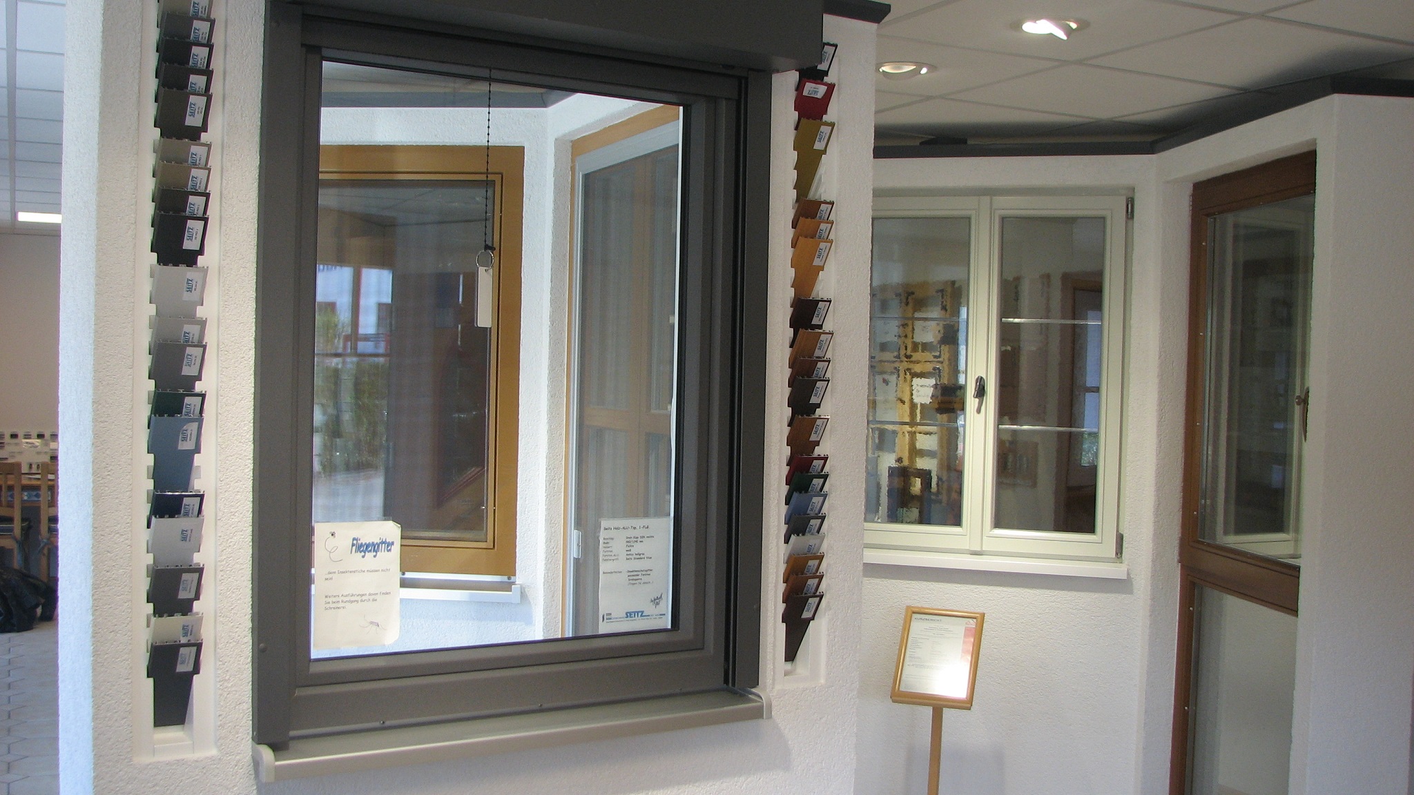 Das Erdgeschoss wurde zu einer Art Erlebnis-Rundgang – in dem Firmengeschichte, Materialkunde und zahlreiche wertvolle Informationen rund ums Thema Fenster und Türen präsentiert werden.