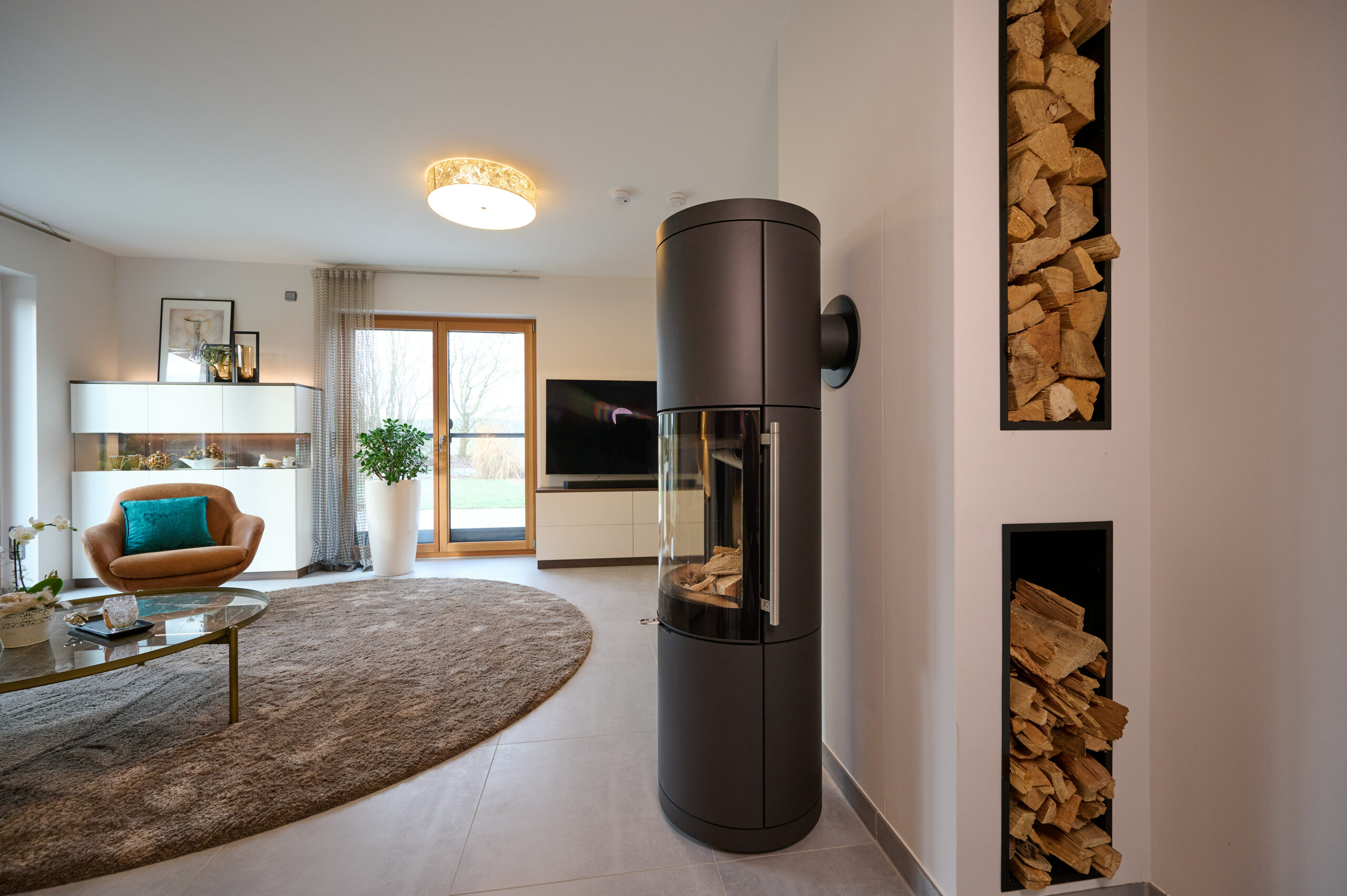 Ein neuer Schwedenoffen mit pfiffiger Lösung für die Holz-Aufbewahrung sorgt für Behaglichkeit und Flair.
