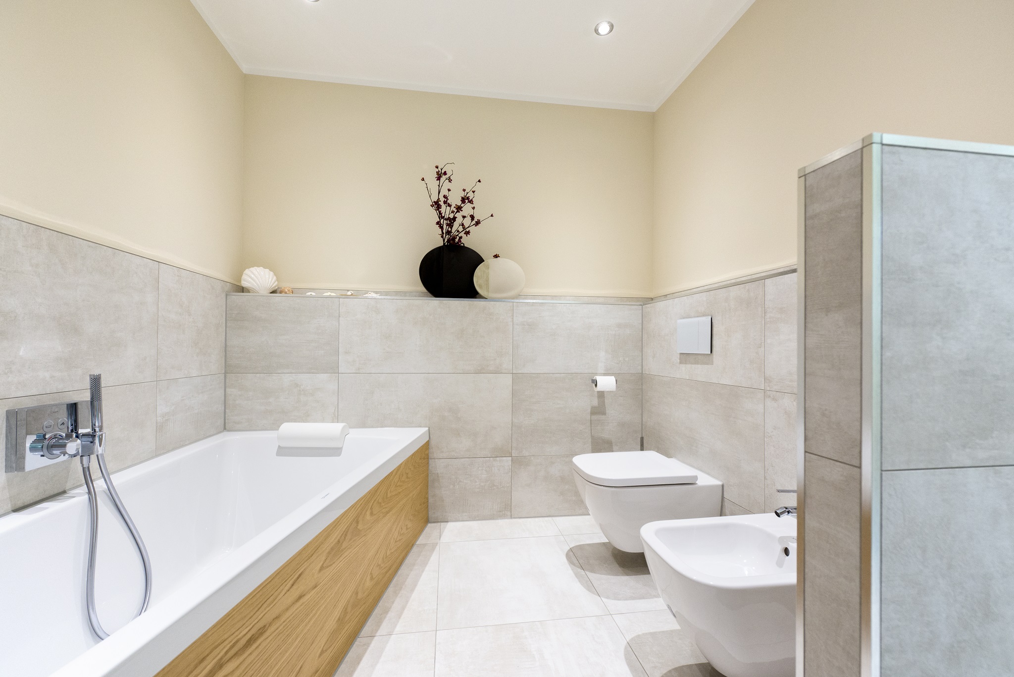Die Anforderung war, ein moderneres und vor allem helleres Resultat zu erreichen. Der neue Kachelofen ist viel moderner und leichter im Raum. Das ehemalige kleine Bad hat als Zugewinn die Fläche des bisherigen Büros dazu bekommen. Somit stand einer großzügigen Badplanung nichts im Wege.