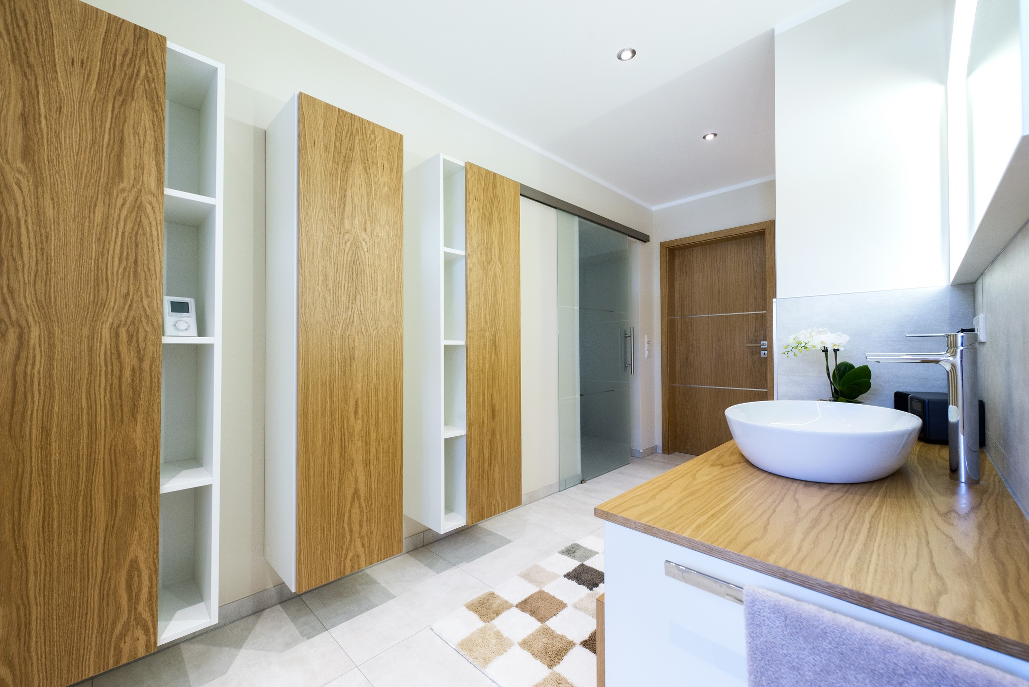 Astrid Fuchs wurde mit der Grundrissplanung betraut und schaffte so ein völlig neues Raumdesign. Ein tolles Farb- und Materialkonzept, versehen mit einer ansprechenden Lichtplanung, schaffen einen modernen wohnlichen Look.